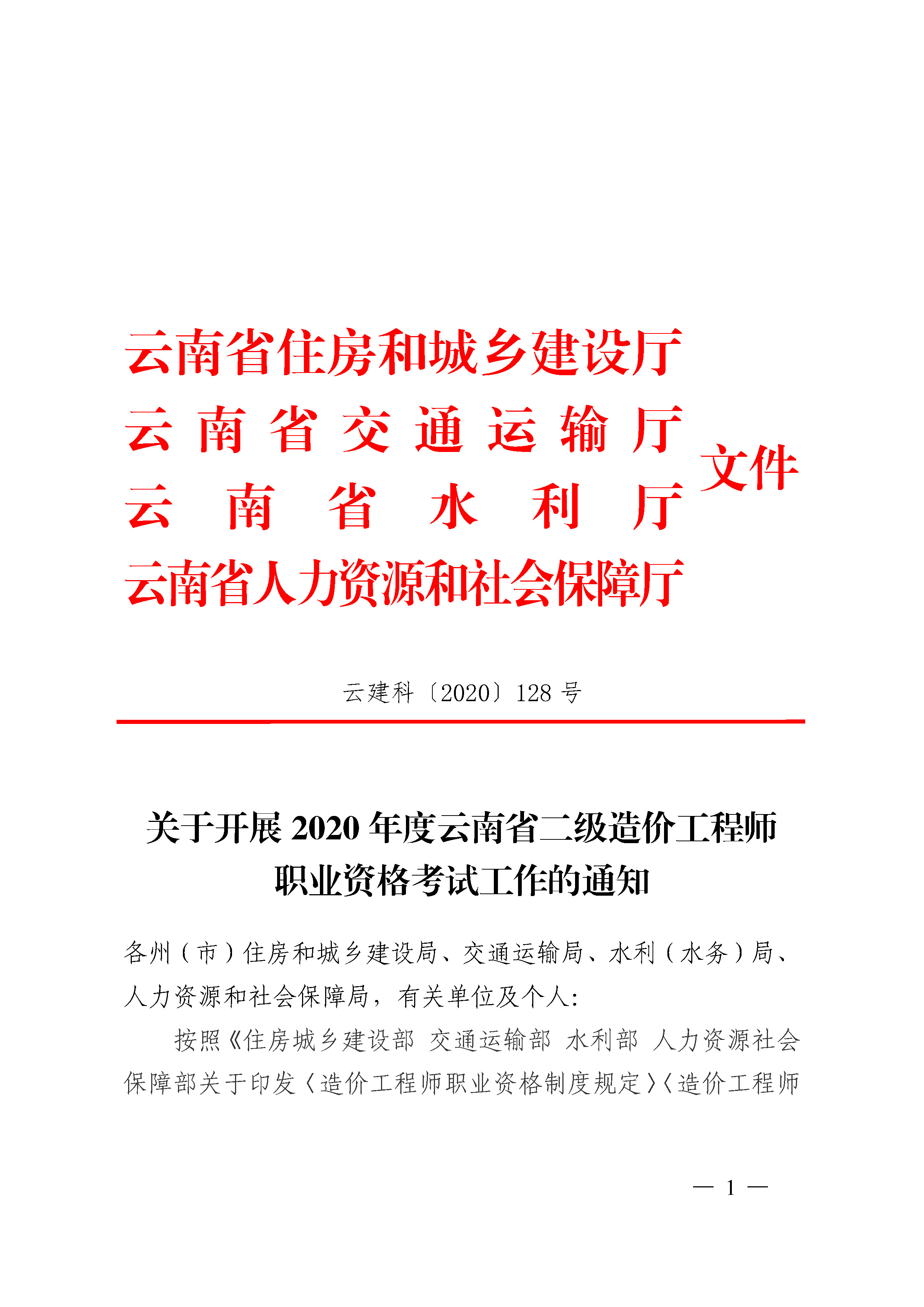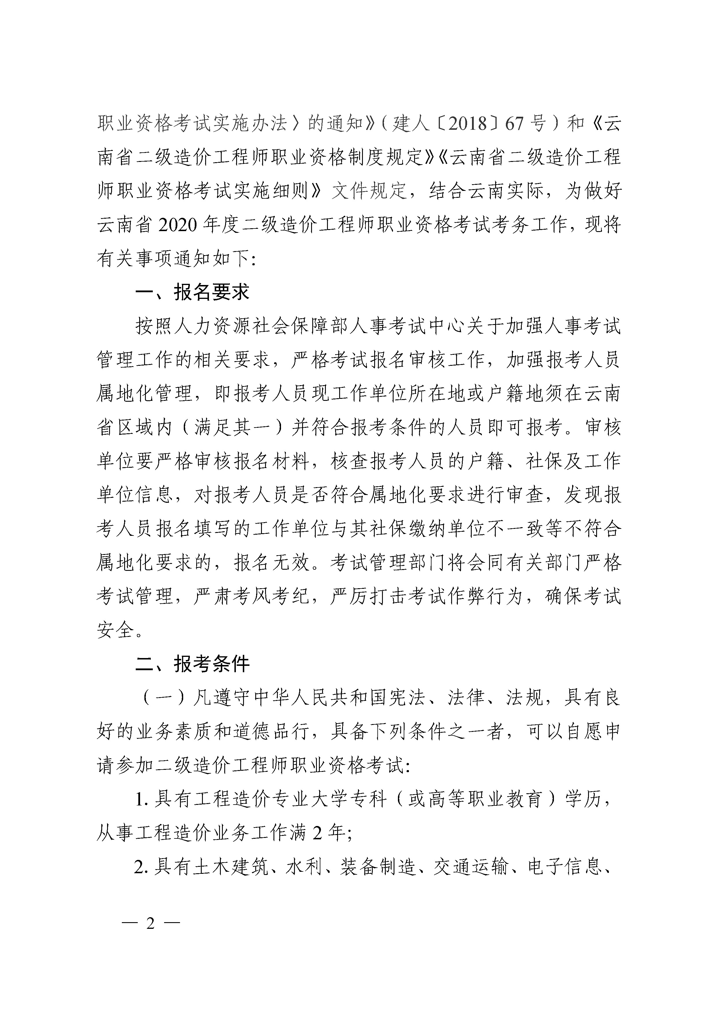 關于開展2020年度云南省二級造價工程師職業(yè)資格考試工作的通知