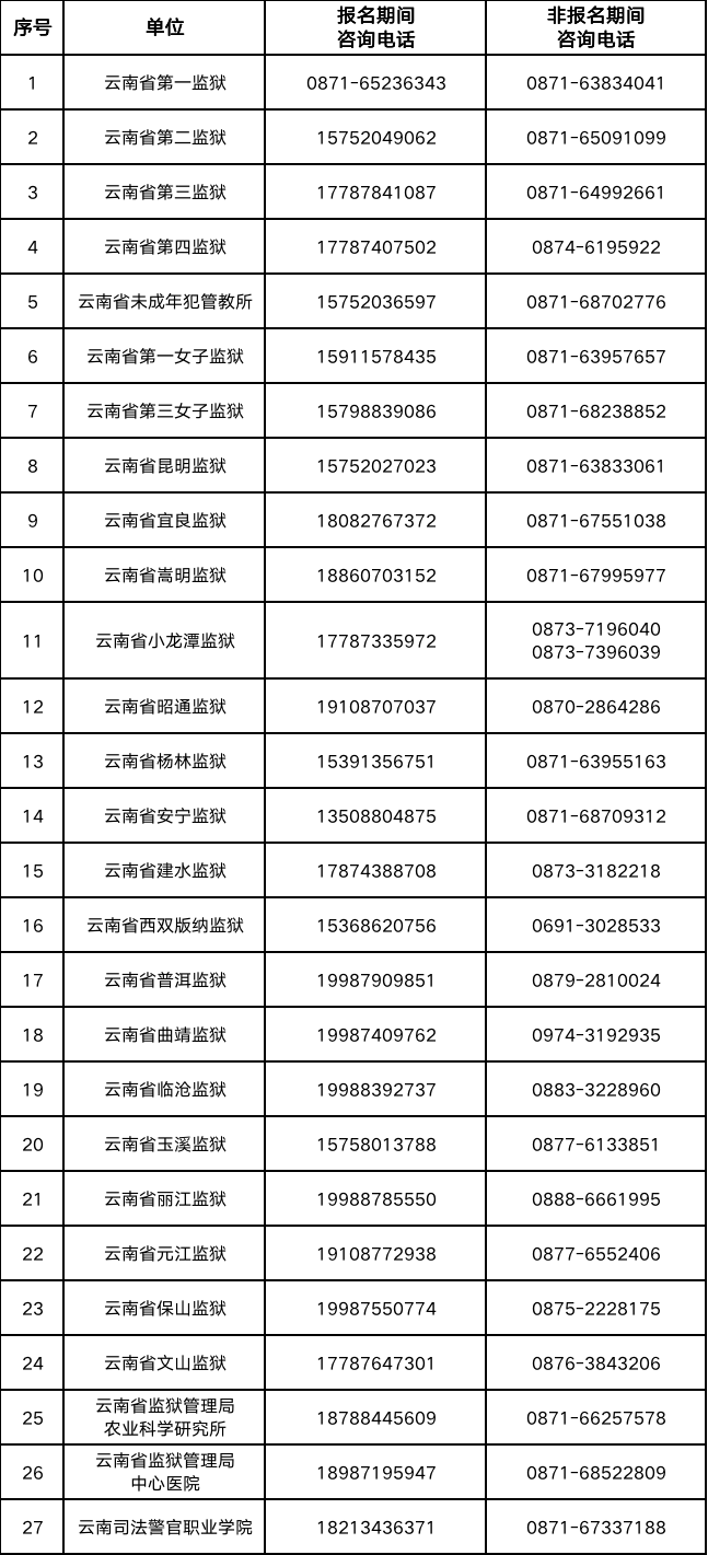 關(guān)于報(bào)考云南監(jiān)獄系統(tǒng)2021年公務(wù)員咨詢電話的通知