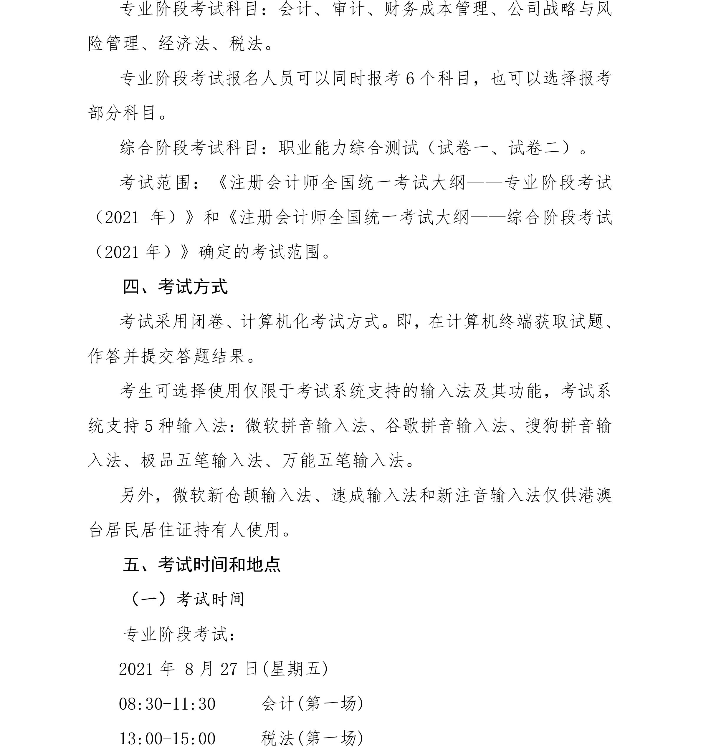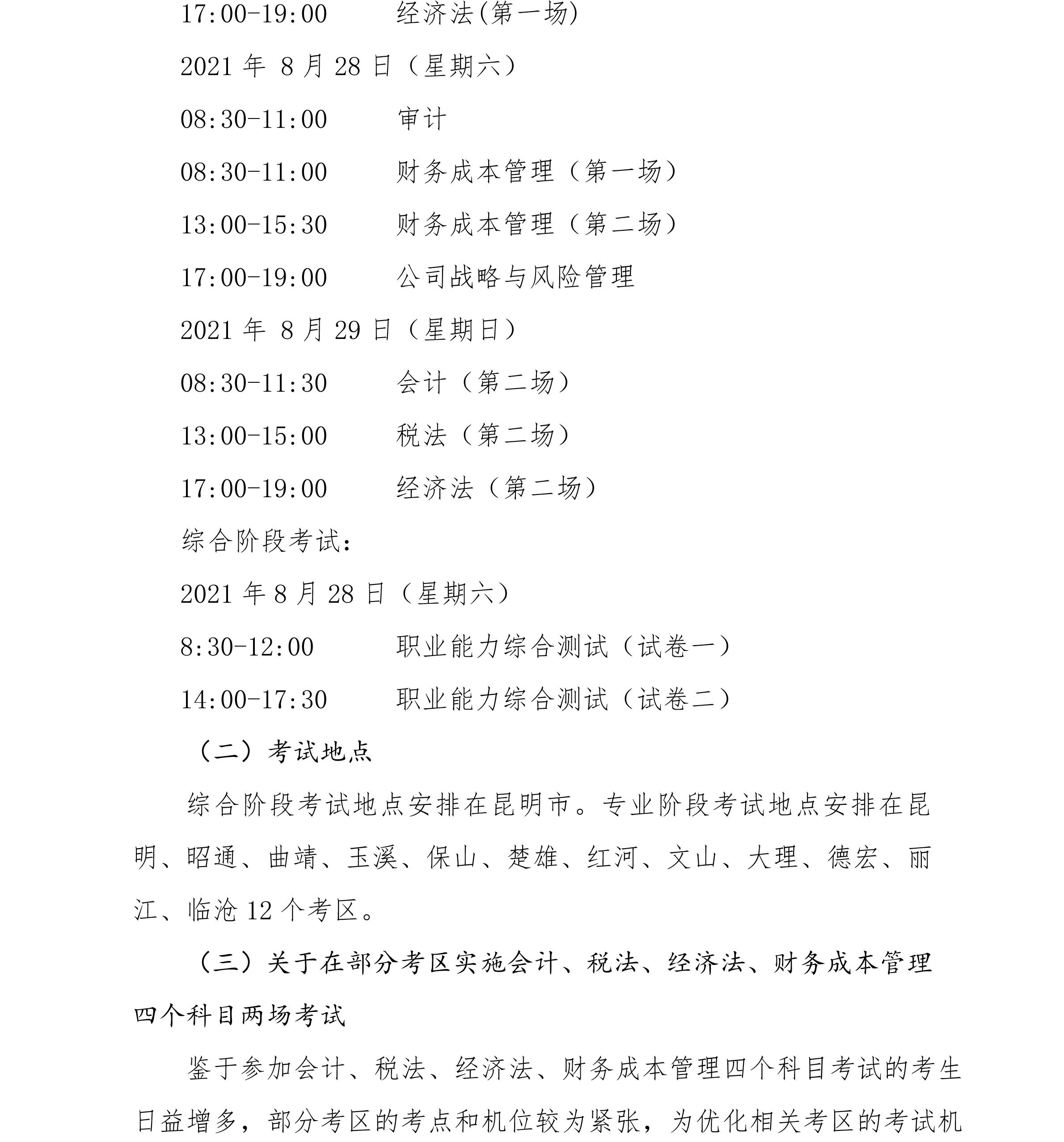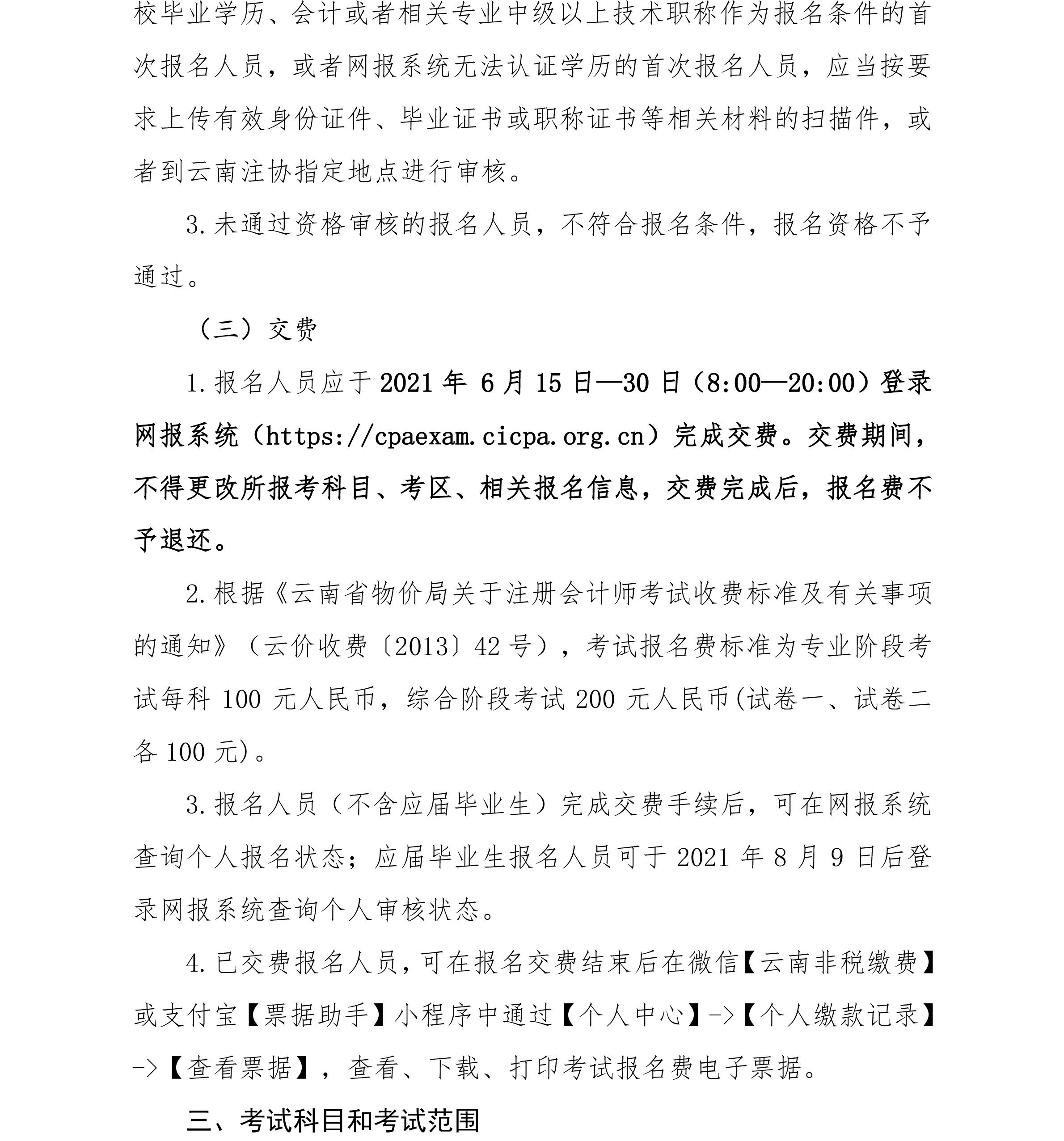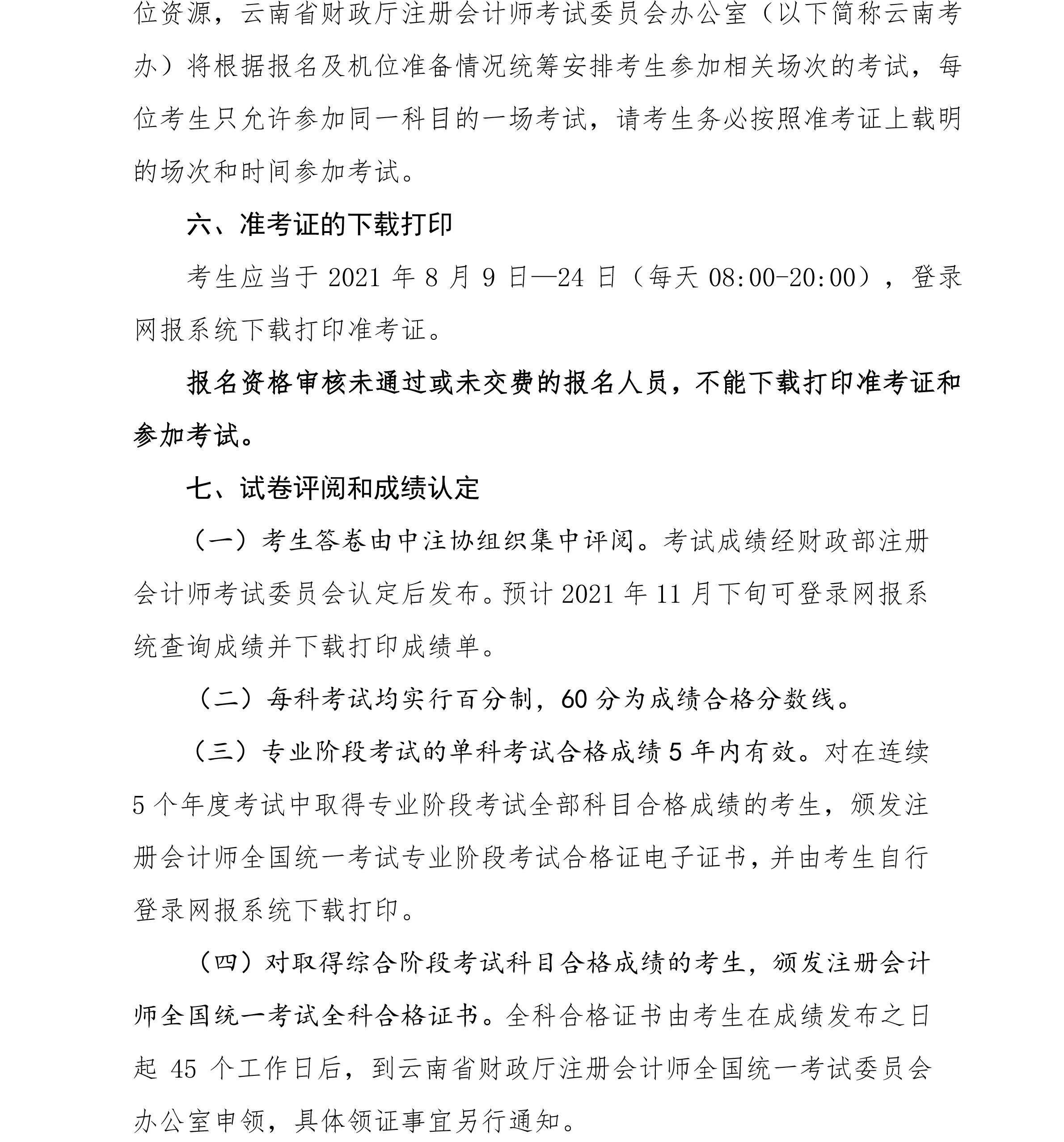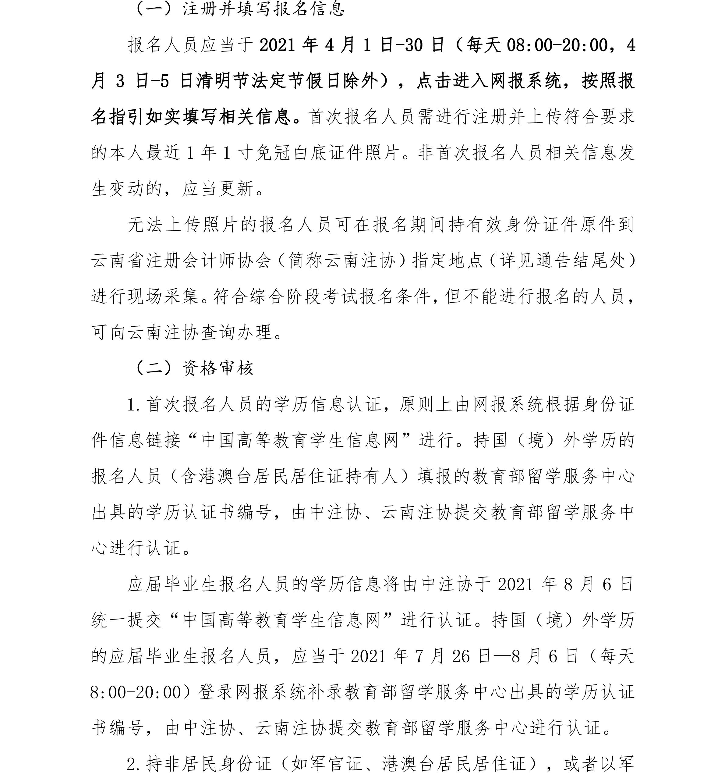 2021年注冊會計師全國統一考試 報名時間2021年4月1-30日 繳費時間:2021年 6月15—30日 考試時間:2021年 8月27日、28日、29日 云南省2021年注冊會計師全國統一考試報名通告
