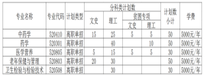 保山中醫藥高等專科學校2021年高職單招——招生簡章