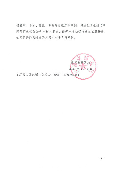 云南省檔案局2021年考試錄用公務(wù)員資格復(fù)審公告