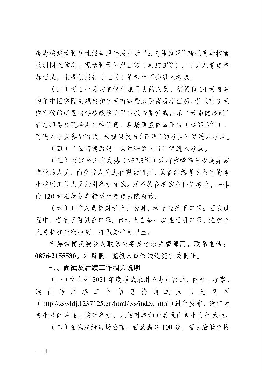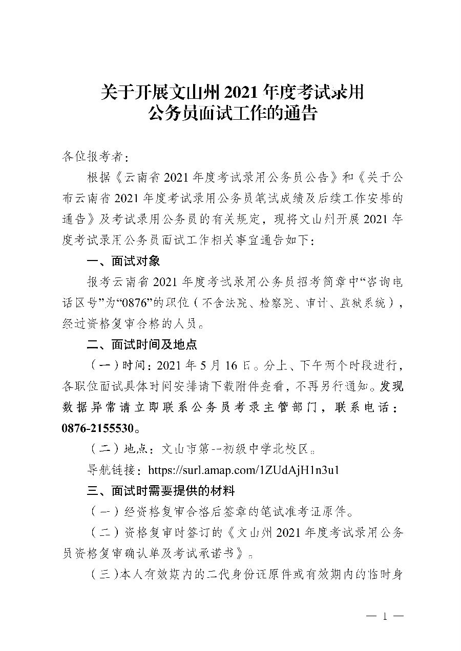 關于開展文山州2021年度考試錄用公務員面試工作的通告