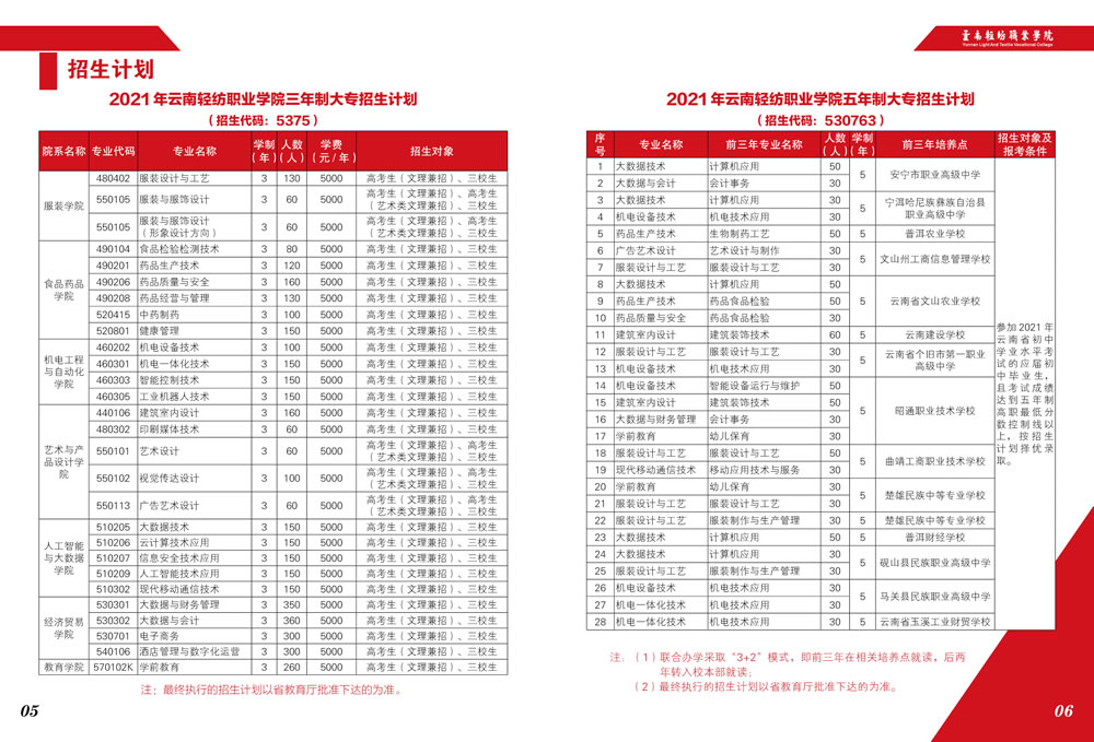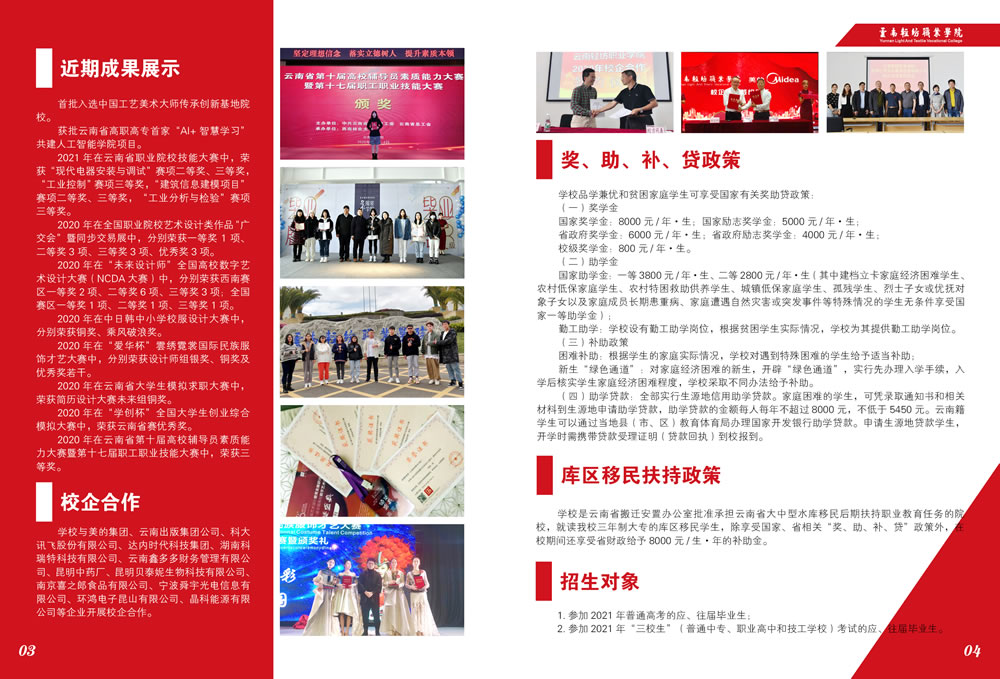 云南輕紡職業學院2021年招生簡章