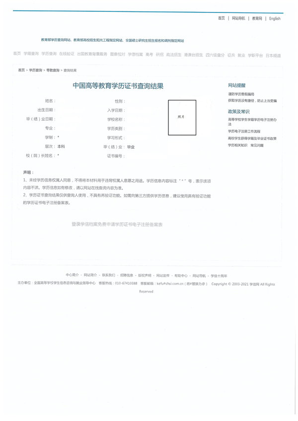 1.學信網(wǎng)學歷查詢結(jié)果、中國高等教育學歷認證報告等補正材料;