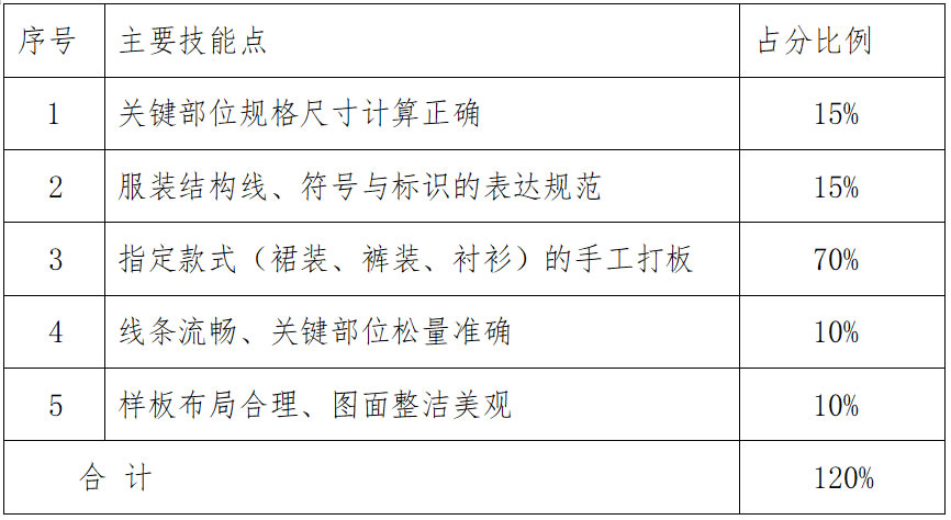 (2)技能要求: 主要考查學(xué)生對服裝結(jié)構(gòu)制圖知識的認(rèn)知程度,以及運(yùn)用知識分析問題、解決問題的能力,能達(dá)到職業(yè)崗位能力的基本要求。具體要求如下: