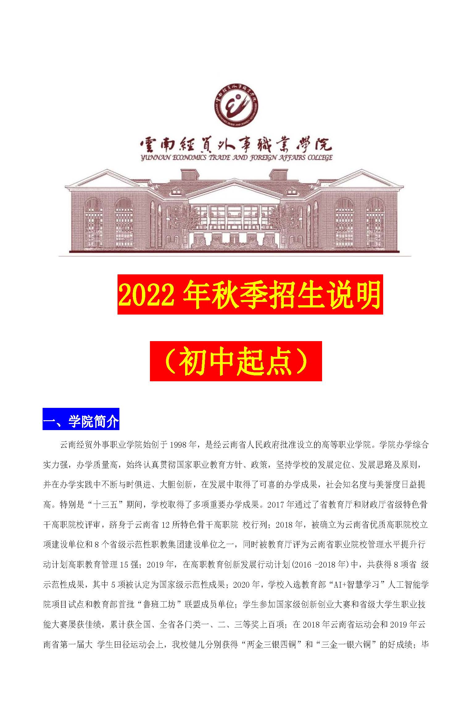 2022年云南經(jīng)貿(mào)外事職業(yè)學(xué)院秋季學(xué)期