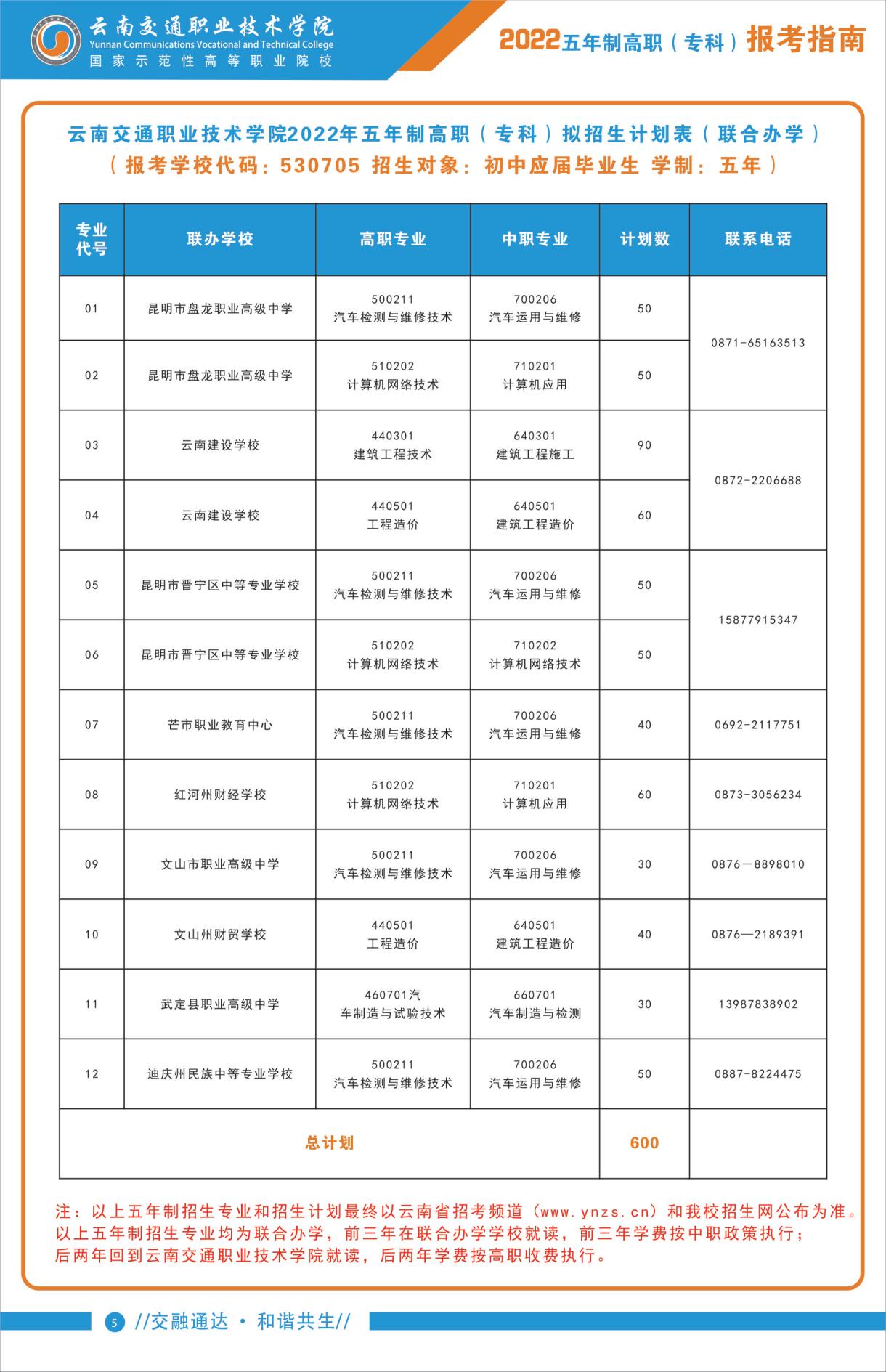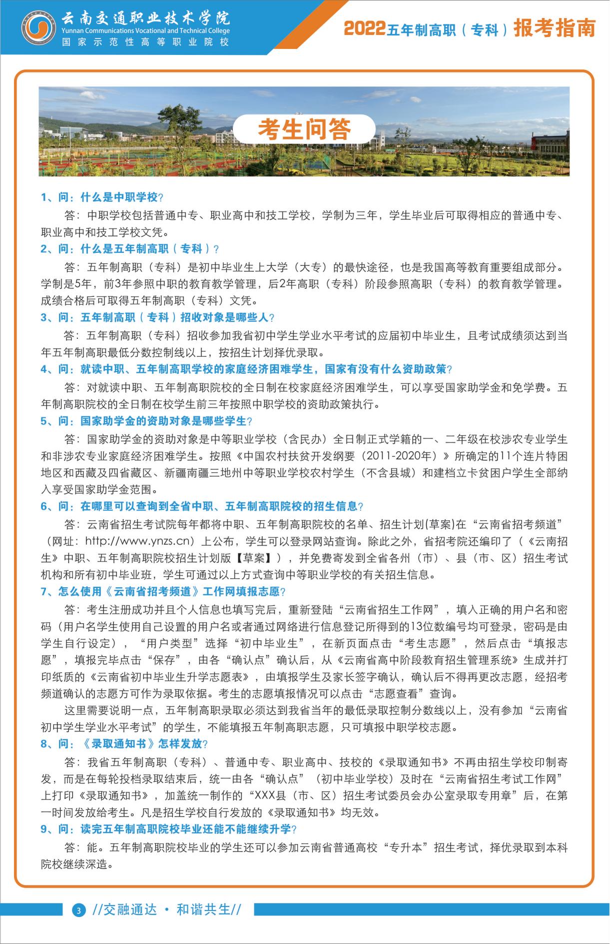云南交通職業技術學院五年制高職(專科)2022報考指南