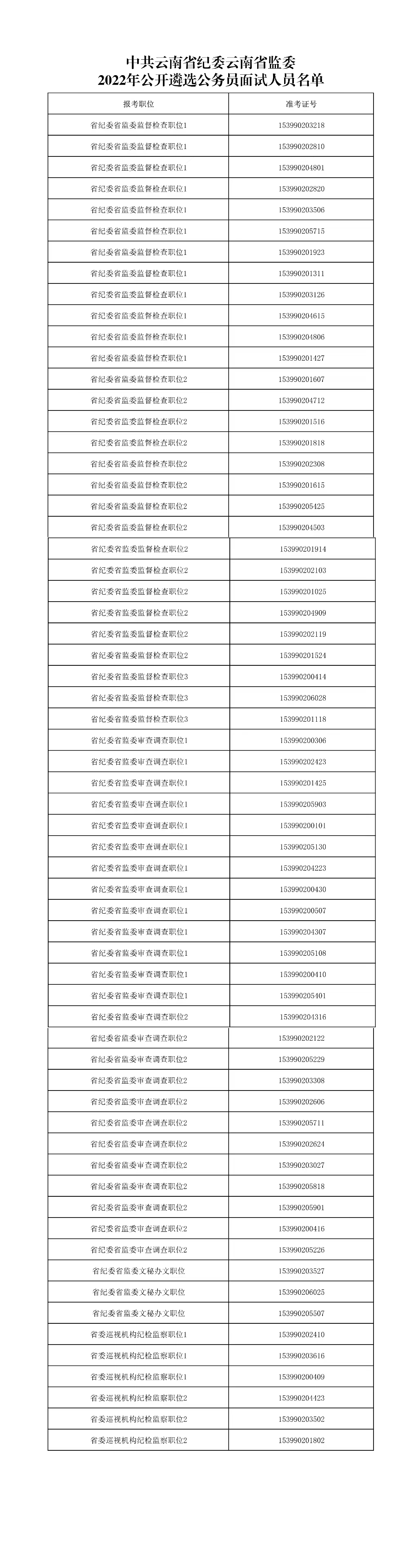 2022年公開(kāi)遴選公務(wù)員面試 人員名單