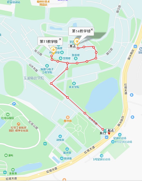 附件1:玉溪師范學院考點2022年下半年全國計算機技術與軟件專業技術資格(水平)考試考生進校考試及離校路線圖