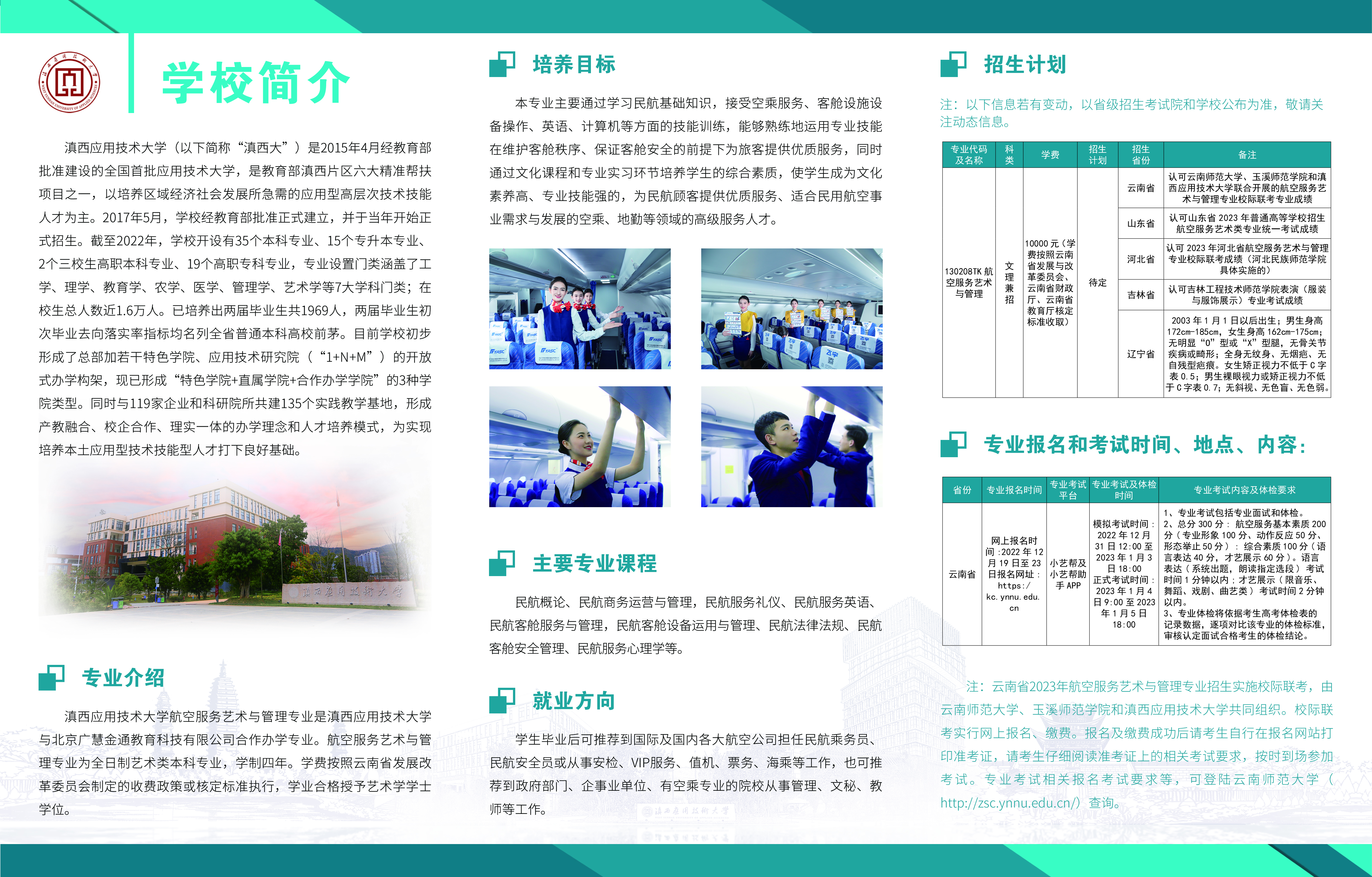 滇西應用技術大學 2023年航空服務藝術與管理專業招生簡章