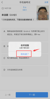 9.考試在接收到監(jiān)控老師提醒后,需點(diǎn)擊“我知道了”,方可繼續(xù)答題。
