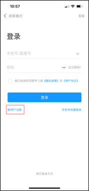 下載學(xué)習(xí)通,手機(jī)端打開學(xué)習(xí)通APP,點(diǎn)擊“我”頁(yè)面頂端“登錄/注冊(cè)”。首次登錄,點(diǎn)新用戶注冊(cè)識(shí)別本機(jī)號(hào)碼快捷注冊(cè),想用其它手機(jī)號(hào)注冊(cè),點(diǎn)擊“短信驗(yàn)證碼注冊(cè)”后輸入其他手機(jī)號(hào),獲取驗(yàn)證碼,根據(jù)密碼規(guī)則設(shè)置密碼,再根據(jù)提示注冊(cè)賬號(hào),并綁定學(xué)號(hào)(學(xué)號(hào)處為:身份證號(hào))完善信息,如下圖所示: