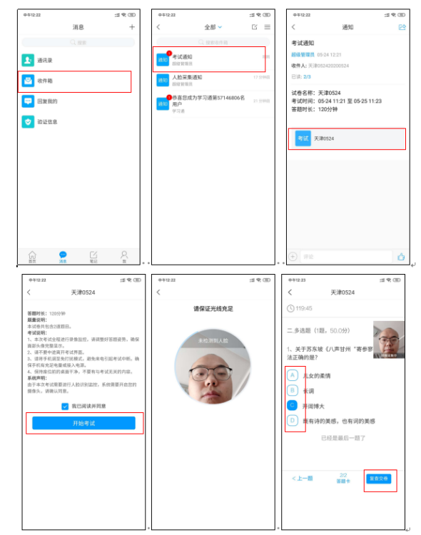 方式一:學(xué)校發(fā)起了考試通知,點(diǎn)擊通知進(jìn)入考試即可。