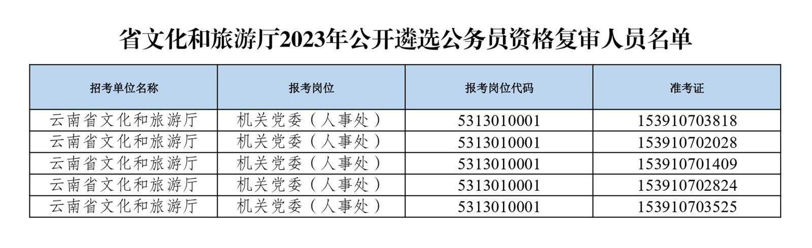 進入省文化和旅游廳公開遴選公務員面試資格復審的人員(見附件)。