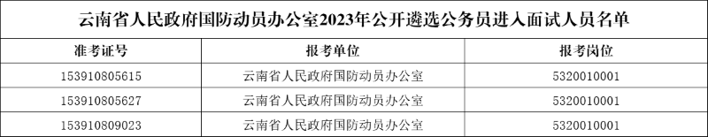 附件:云南省人民政府國(guó)防動(dòng)員辦公室2023年公開遴選公務(wù)員進(jìn)入面試人員名單.xls