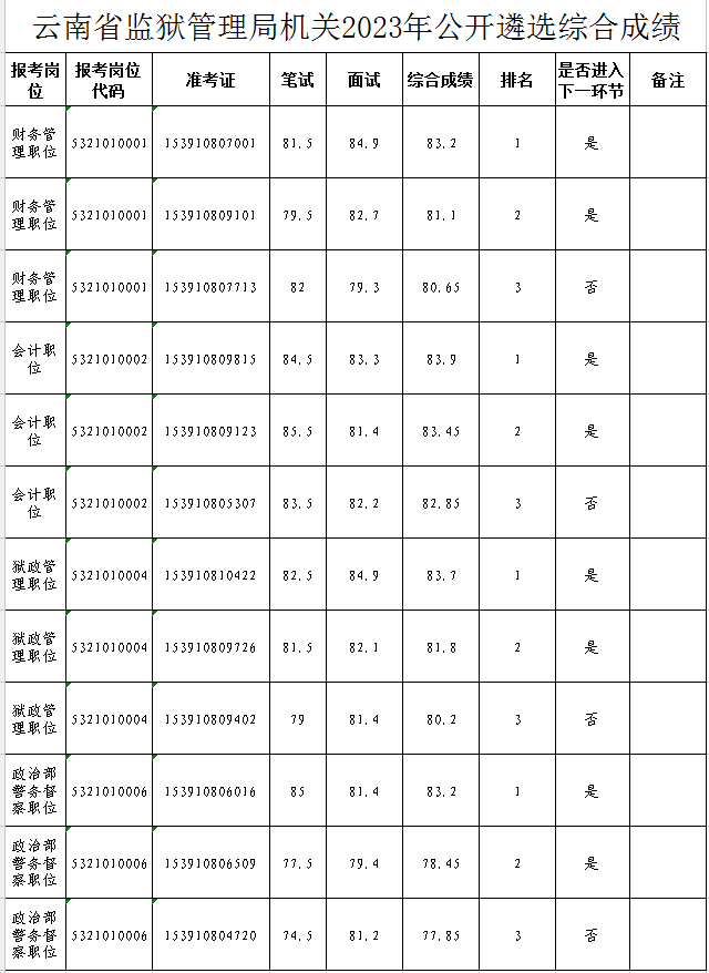 云南省監獄管理局機關2023年公開遴選綜合成績附后。