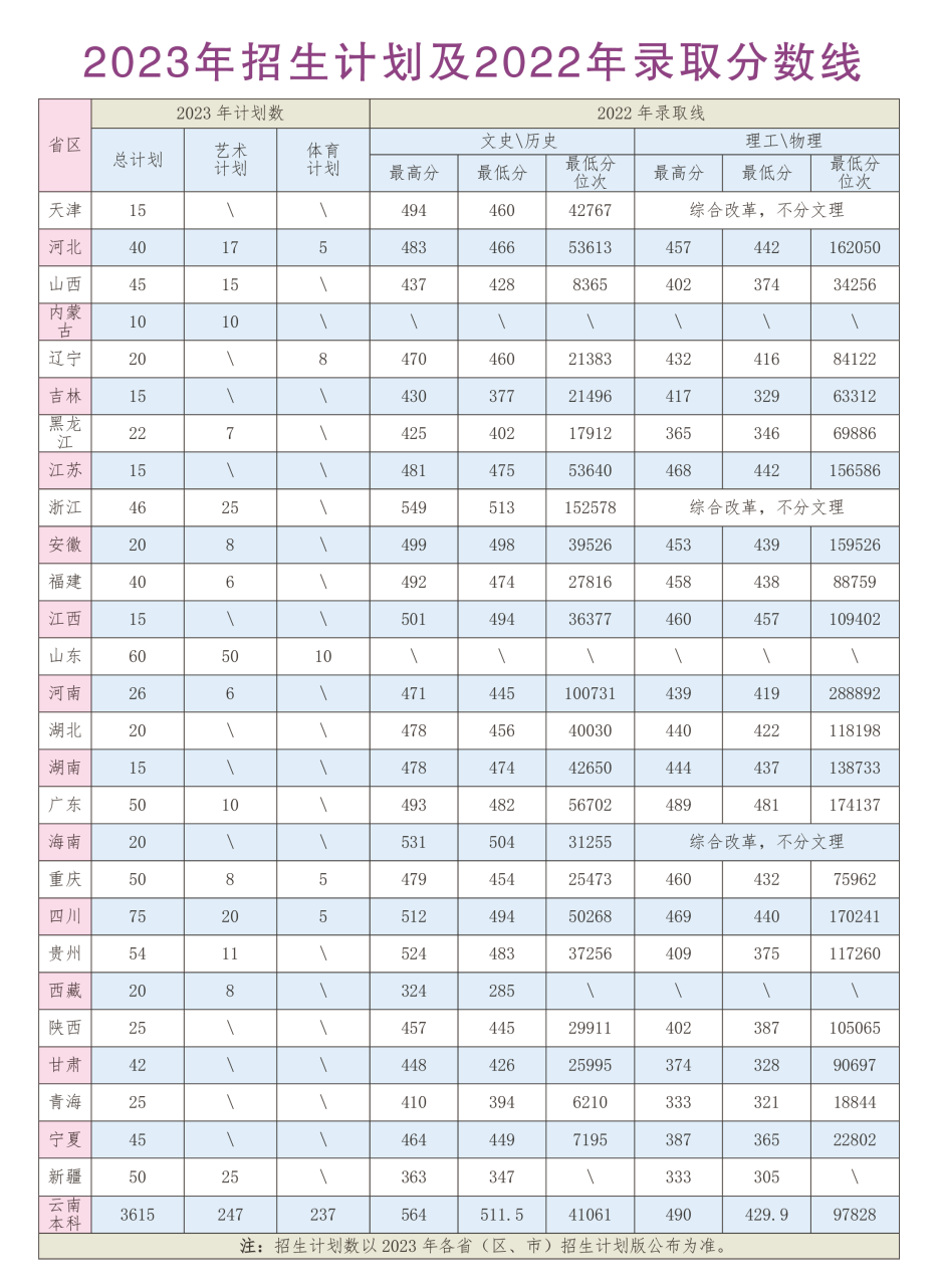 2023年昆明文理學院招生計劃及2022年錄取分數(shù)線