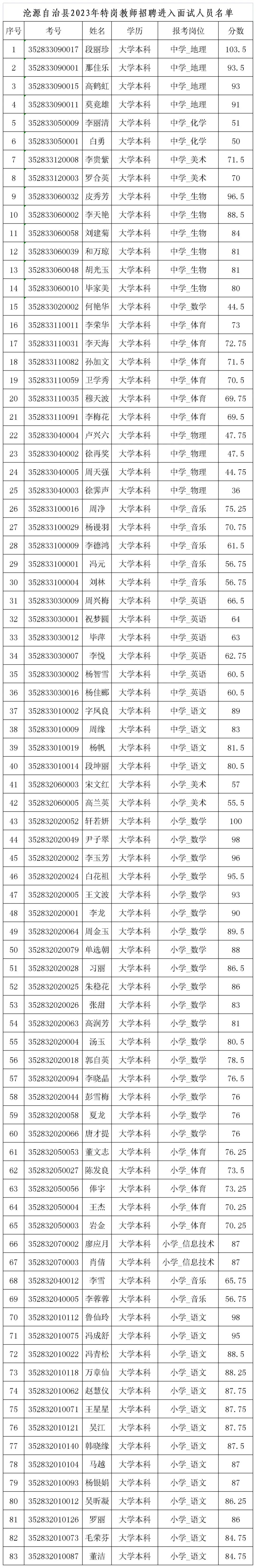 附件:滄源自治縣2023年特崗教師招聘進入面試人員名單