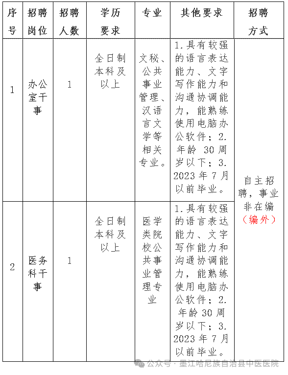 根據醫院業務發展需求,為進一步加強醫院人才隊伍建設,提高服務能力,擬面向社會公開招聘(編外)1名辦公室干事、1名醫務科干事。為確保招聘工作順利進行,根據《云南省事業單位公開招聘工作人員辦法》等有關規定,現就我院招聘有關事宜公告如下: