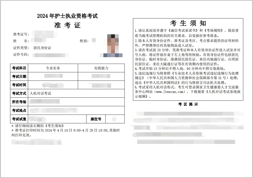 2024年度衛生專業技術資格考試和護士執業資格考試準考證打印提醒