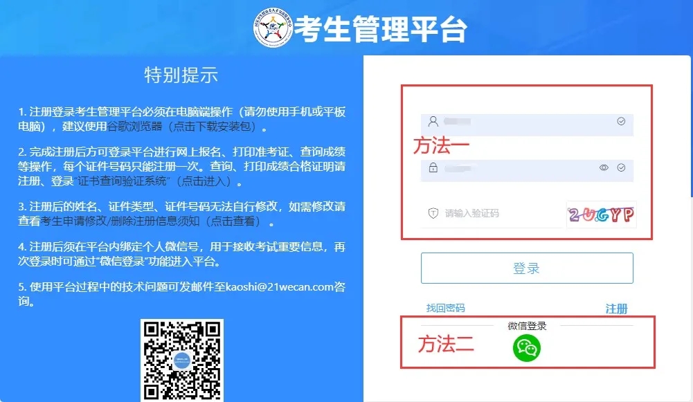 溫馨提示:登錄考生管理平臺必須在電腦端操作(請勿使用手機或平板電腦),建議使用谷歌瀏覽器。