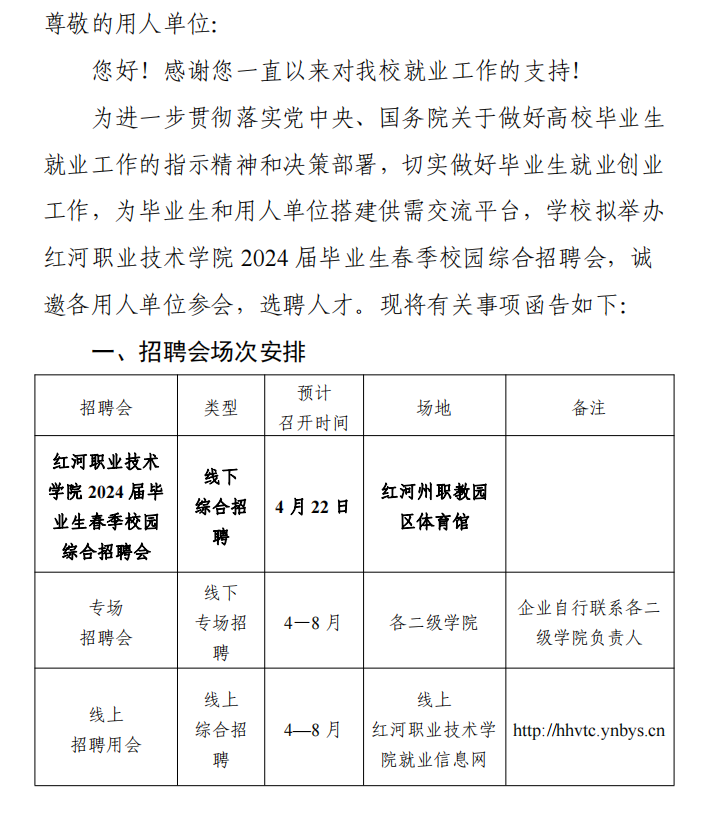 紅河職業(yè)技術學院2024屆畢業(yè)生春季校園綜合招聘會邀請函