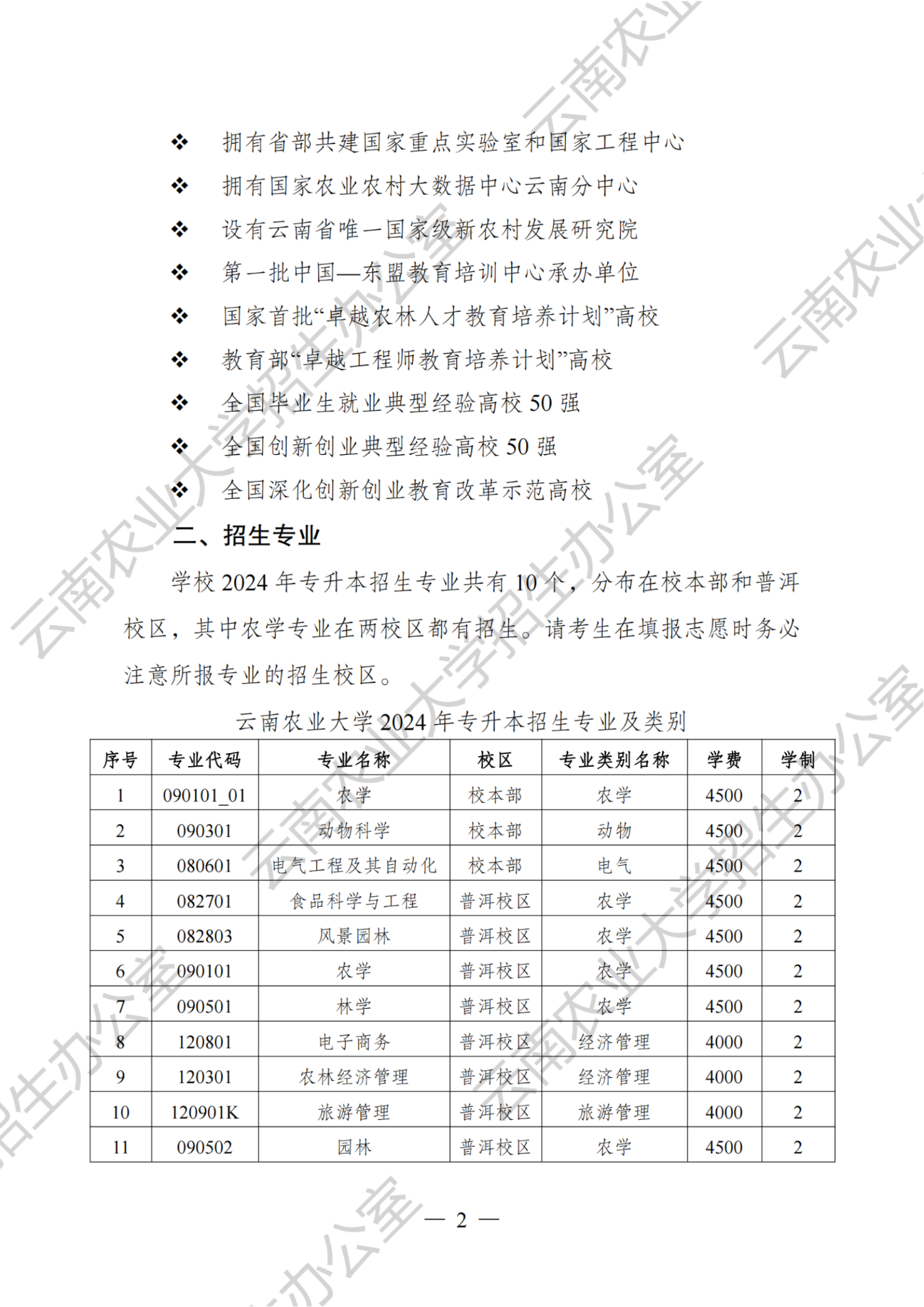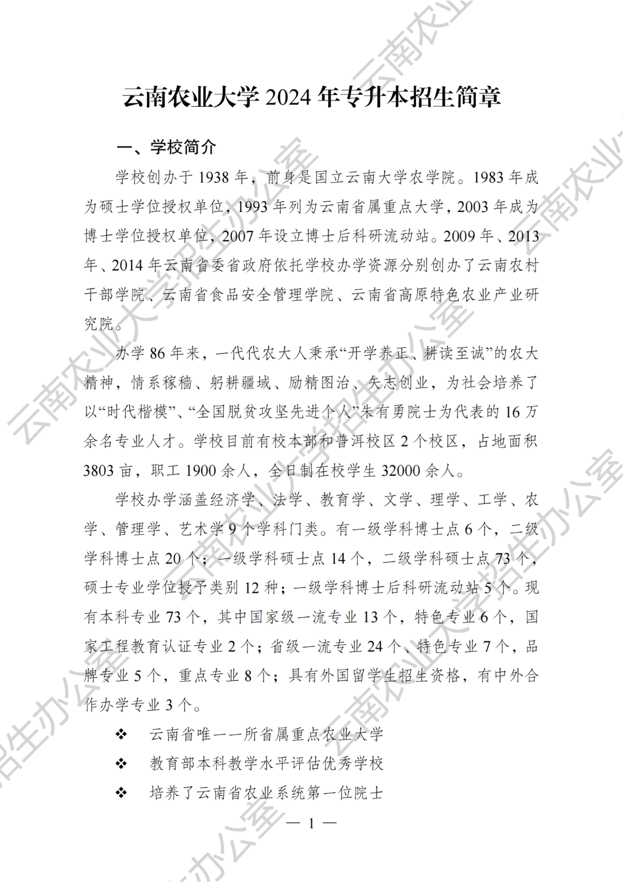 閱讀全文 2024年云南農(nóng)業(yè)大學專升本招生簡章