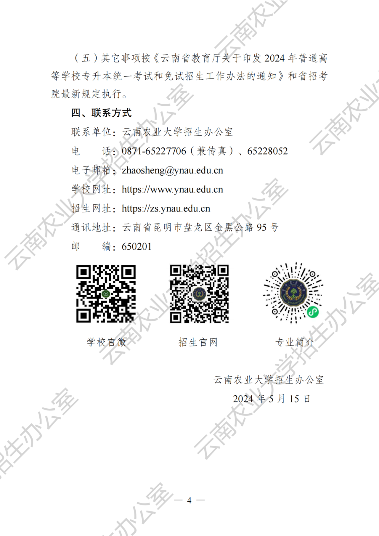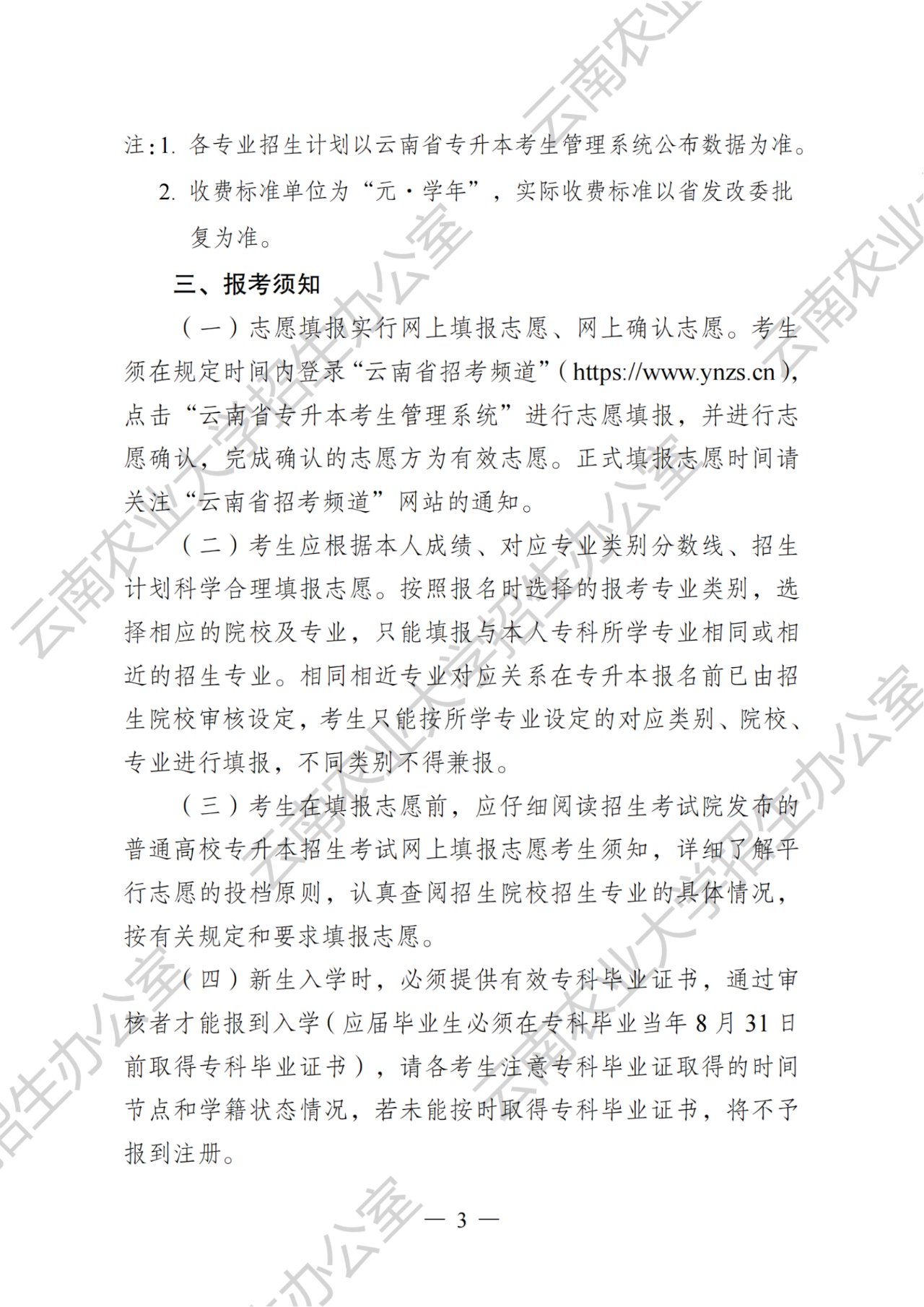 云南農(nóng)業(yè)大學2024年專升本招生簡章