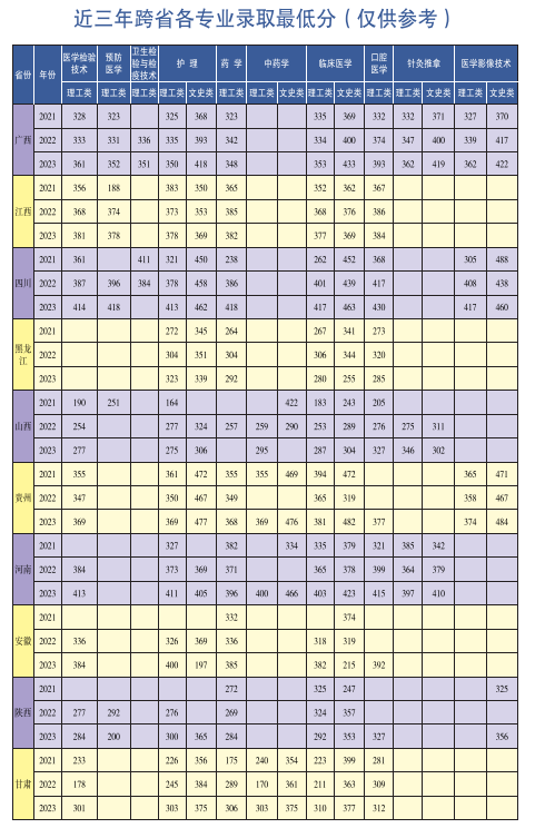 云南省近三年各專業(yè)錄取最低分(僅供參考)