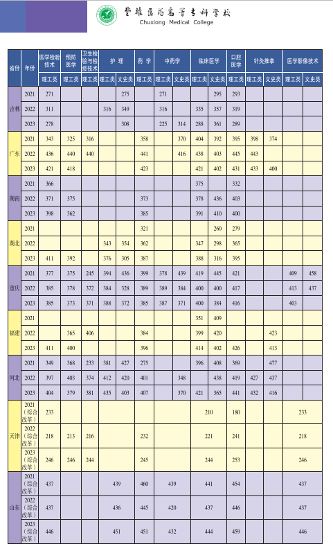 2024年楚雄醫(yī)藥高等專科學(xué)校近三年普通專科跨省分專業(yè)招生計(jì)劃表