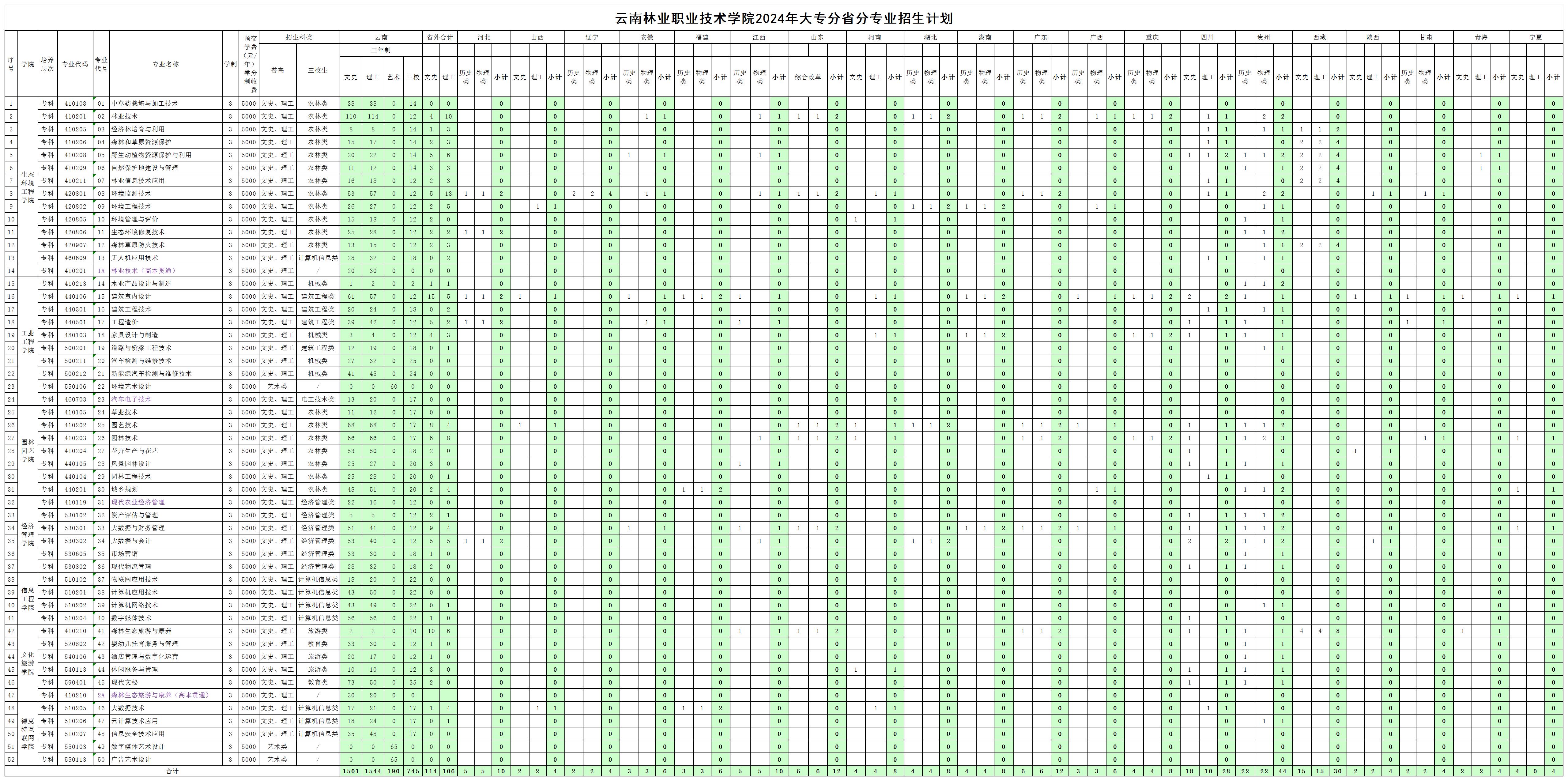 2024年大專分省分專業(yè)招生計(jì)劃表