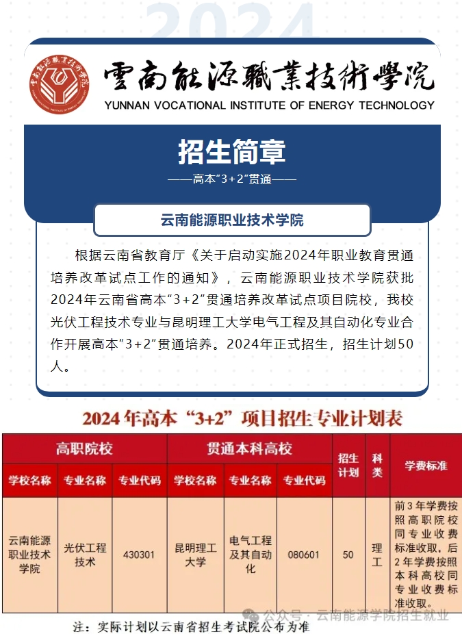 2024年云南能源職業(yè)技術(shù)學(xué)院光伏工程技術(shù)高本“3+2”貫通招生簡章