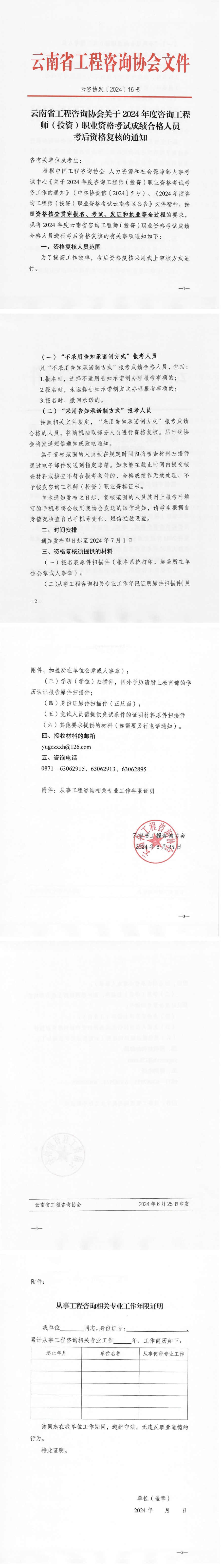 關于2024年度咨詢工程師(投資) 職業資格成績合格人員考后資格復核的通知