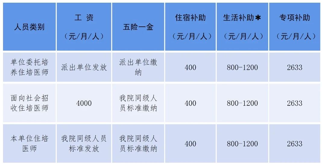 (生活補助?:住培醫師第一年未取得執業醫師資格的,發放每人每月800元的生活補助;第二年未取得執業醫師資格證的,發放每人每月400元的生活補助;第三年未取得執業醫師資格證的,不再發放生活補助。住培醫師取得執業醫師資格后,發放每人每月1200元生活補助。)