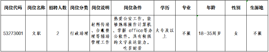 本次招錄共設1個崗位,女性2人。詳情請關注“西盟警方”微信公眾號查詢。