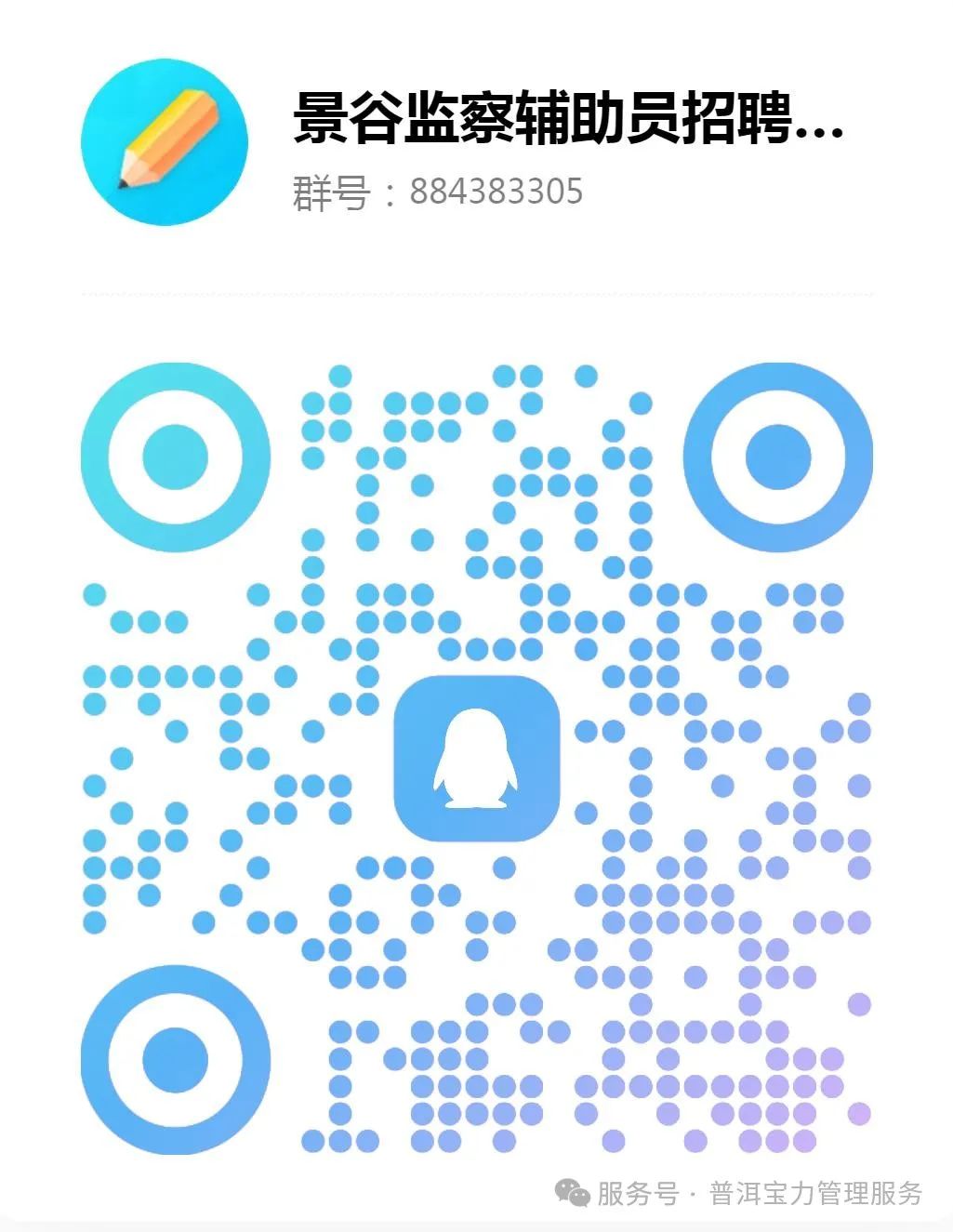 (四)招聘工作期間,報考人員應及時關注招聘工作信息(微信公眾號“普洱寶力管理服務”,二維碼附后),并掃碼加入本次招聘考試QQ群(二維碼附后);保持聯系電話暢通,因通訊不暢或未及時關注招聘工作信息等原因導致相關后果由報考人員本人承擔。