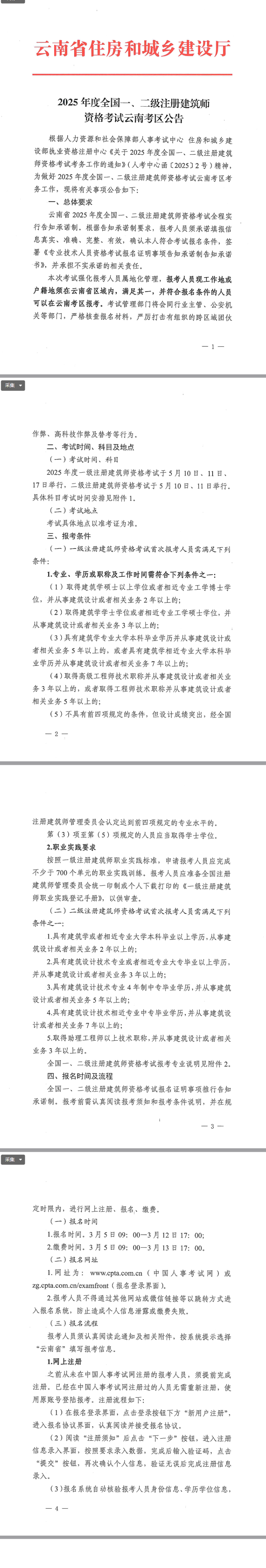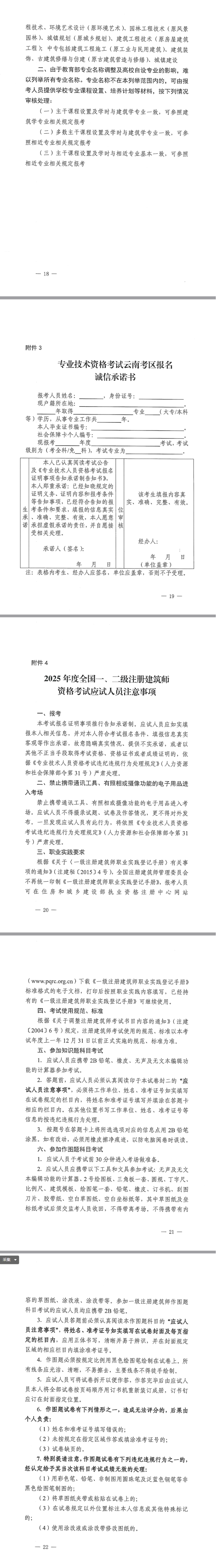 2025年度全國一、二級注冊建筑師資格考試云南考區公告