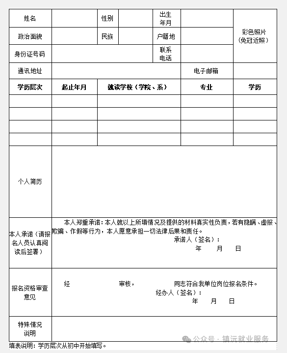 附件:2025年中國共產黨鎮沅彝族哈尼族拉祜族自治縣委員會統一戰線工作部公益性崗位招聘報名表