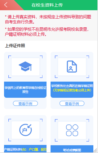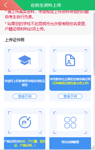 11.如果注冊的時候選擇“非在校生”,登錄進入后直接上傳考區證明材料即可進入到人工審核通道,請耐心等待人工審核,一般情況提交材料當天就能得到審核結果。
