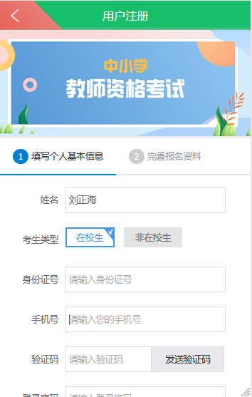 2.選擇在全國中小學教師資格考試網(國考報名網)報名所對應的考區,先進行注冊,注冊的時候需要輸入姓名和身份證號碼,如果能注冊成功,就說明國考報名網的信息已經同步到審核系統數據庫。如果不能注冊成功,請耐心等待數據同步,在中小學教師資格考試網報名成功后,正常10分鐘后可以在審核系統注冊,注冊成功后登錄審核系統。