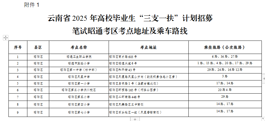 附件:1.云南省2025年高校畢業生“三支一扶”計劃招募筆試昭通考區考點地址及乘車路線