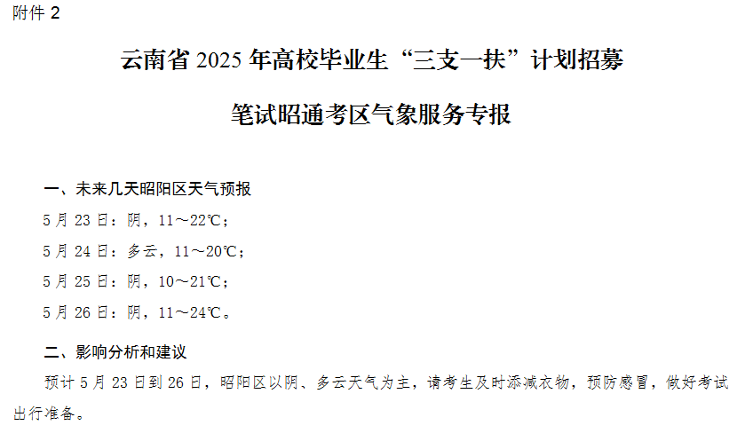 2.云南省2025年高校畢業生“三支一扶”計劃招募筆試昭通考區氣象服務專報