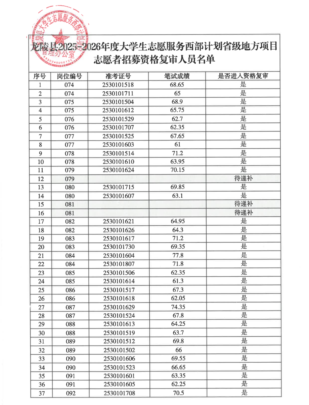 龍陵縣2025-2026年度大學(xué)生志愿服務(wù)西部計(jì)劃省級(jí)地方項(xiàng)目志愿者招募資格復(fù)審公告