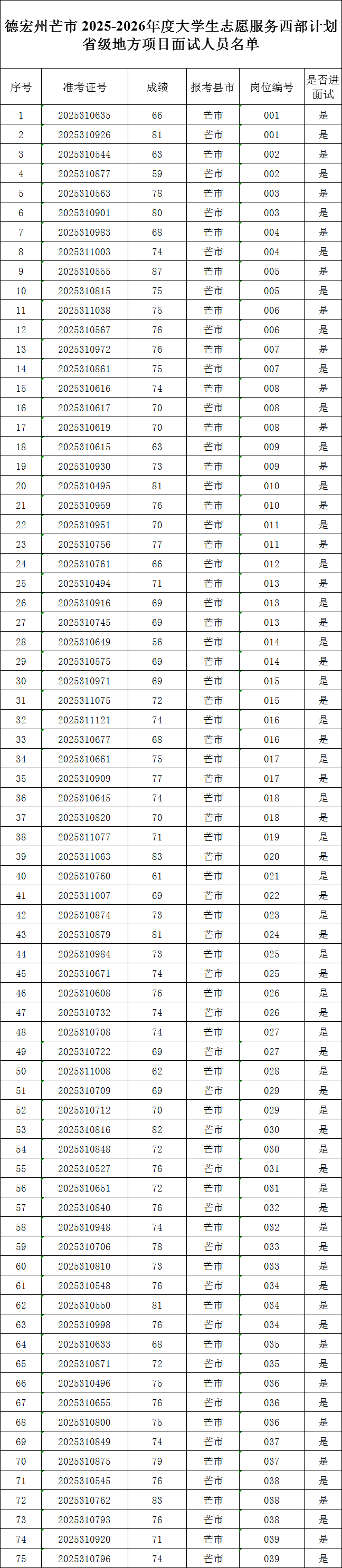 附件1:德宏州芒市2025--2026年度大學(xué)生志愿服務(wù)西部計(jì)劃省級(jí)地方項(xiàng)目面試人員名單