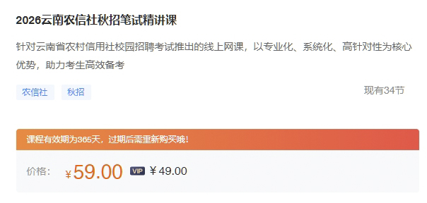 購買《2026云南農信社秋招筆試精講課》贈送《2026云南農信社筆試10套YA題密卷》