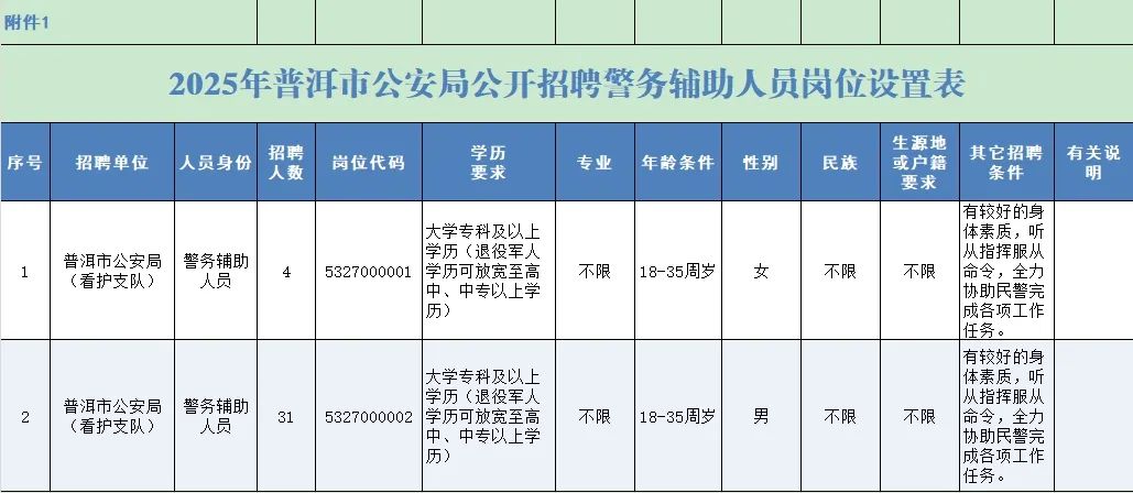 附件: 1.2025年普洱市公安局公開招聘警務(wù)輔助人員崗位設(shè)置表