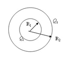2.在半徑為R1和R2的兩個同心球面上,均勻分布著電荷Q1和Q2,如圖所示。求:r<R1;R1<r<R2;r>R2三個區域內的電勢分布。