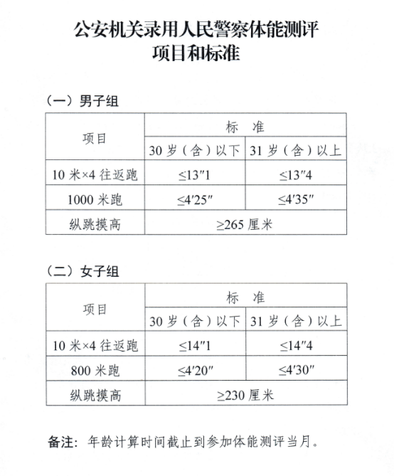 體能測(cè)評(píng)參照《公安機(jī)關(guān)錄用人民警察體能測(cè)評(píng)項(xiàng)目和標(biāo)準(zhǔn)》規(guī)定執(zhí)行。
