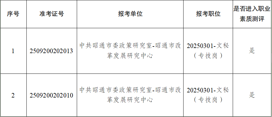 附件:1. 昭通市改革發展研究中心2025年公開選調工作人員職業素質測評人員名單