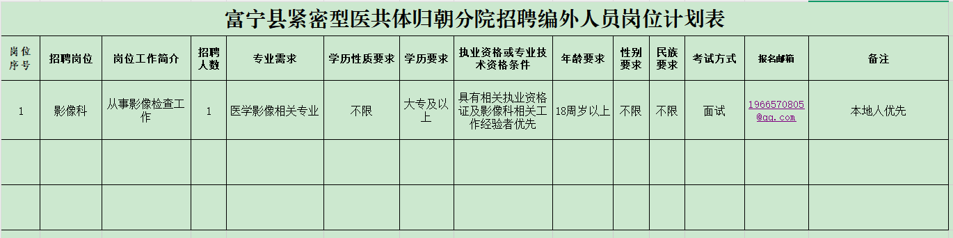 富寧縣緊密型醫共體歸朝分院關于招聘編外工作人員的公告